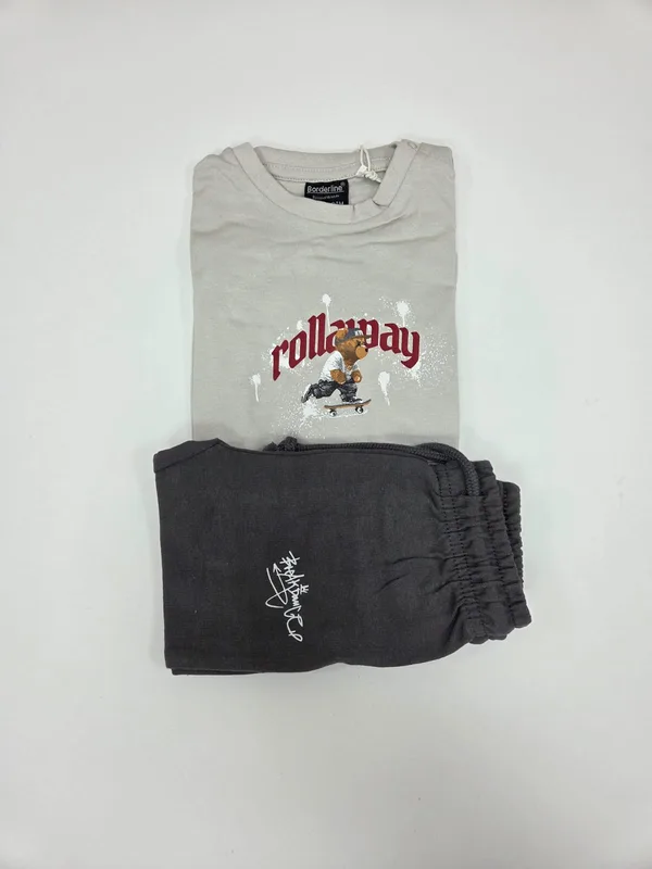 הסט כולל חולצה איכותית ומכנס פנאי למראה יומיומי חסר מאמץ.