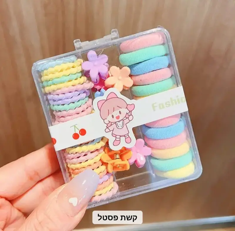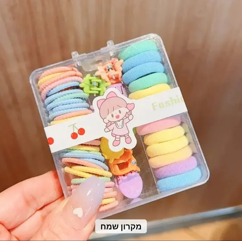 סט אביזרי השיער החיוני לכל ילדה או נערה! מארז הקופסא השימושי הזה כולל מגוון פריטים המתאימים לכל תסרוקת ולכל אירוע, העיצוב המינימליסטי מבטיח שהאביזרים ישתלבו בצורה מושלמת עם כל בגד.
