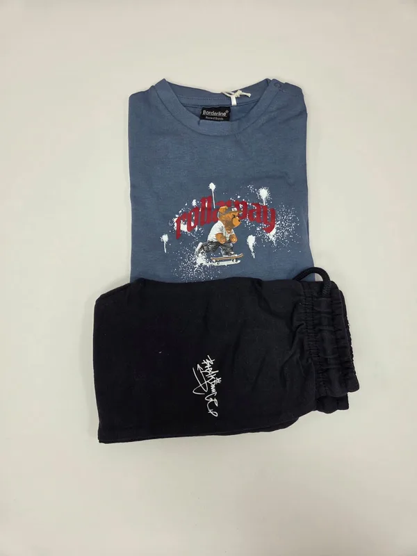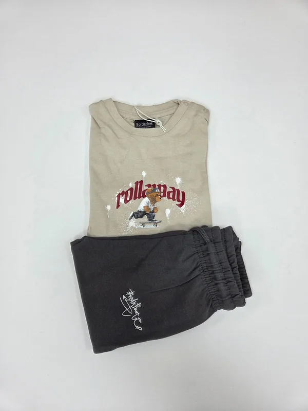 הסט כולל חולצה איכותית ומכנס פנאי למראה יומיומי חסר מאמץ.